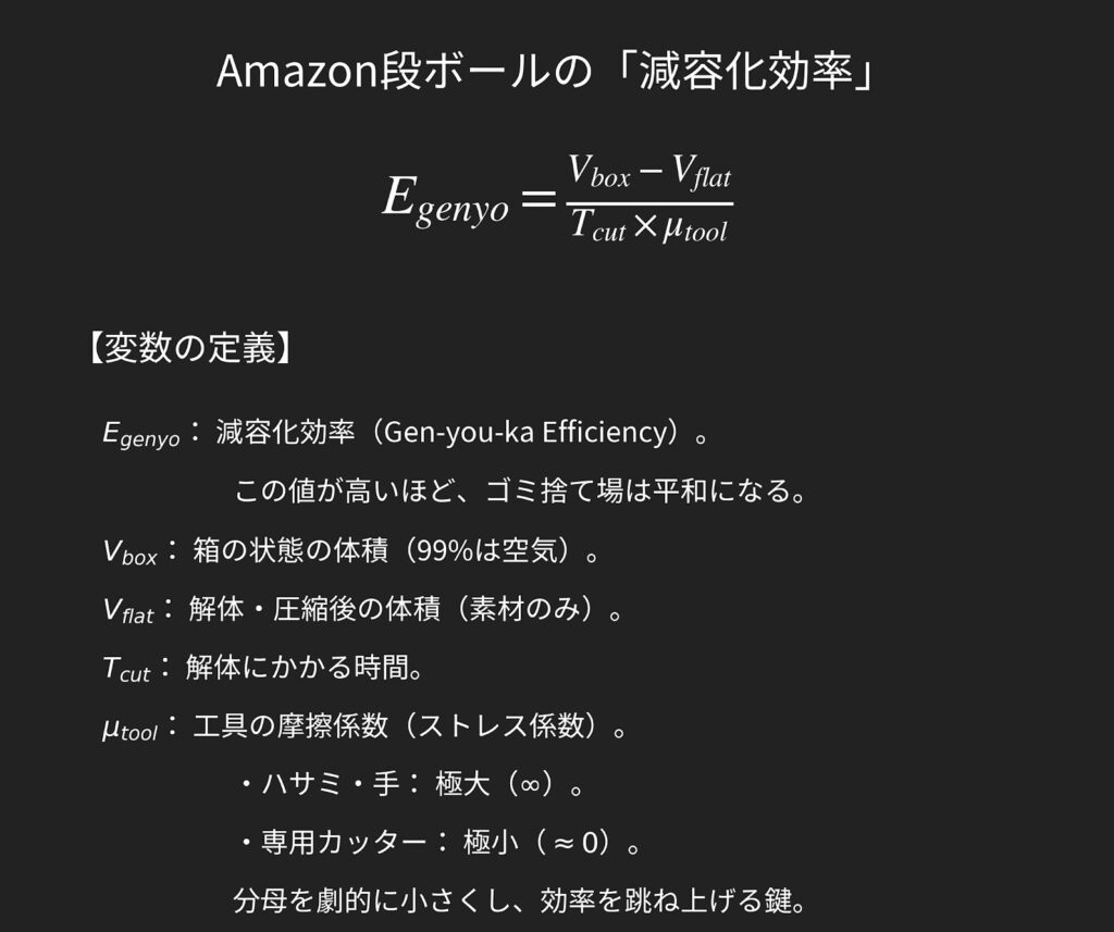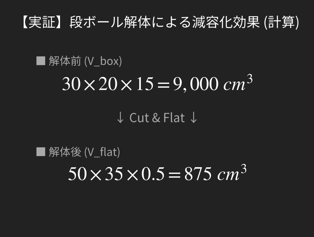 従来のハサミでは「面倒だから後で」と後回しにされ、箱のまま放置されがちでしたが、専用ツールの「切る快感」が心理的ハードルを下げ、即時減容化を実現します。